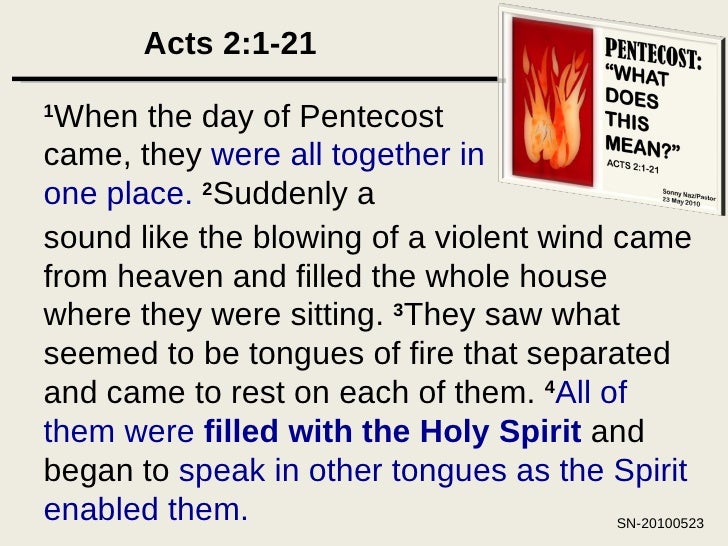 The major festival commemorates the descent of the holy spirit on the apostles and other disciples glossolalists could, apart from those practicing glossolalia, also mean all those christians who believe that the pentecostal/charismatic glossolalia.