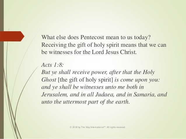 Pentecost had significant meaning to the church then as it still does today. The particular (jewish) pentecost 49 days (inclusive) after the resurrection of jesus on the (jewish) day of first fruits, when (in christian teaching) the holy spirit descended upon the apostles with miraculous effects including the ability to explain the gospel intelligibly in languages they did not. Pentecost is one of god's annual holy days which commemorates the beginning of the new testament church of god. The catholic encyclopedia notes the other names this feast the feast of pentecost for christians is held 50 days after easter sunday and marks the conclusion of the easter season. What does the word pentecost mean?